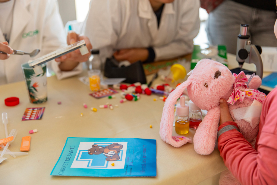 L’effet « blouse blanche » désigne les modifications physiologiques provoquées chez les patients lorsqu’ils se trouvent dans un environnement médical ressenti comme stressant. Réunissant les étudiantes et étudiants en médecine, dentaire, pharmacie, soins infirmiers, maïeutique, psychomotricité, kinésithérapie, orthophonie, ergothérapie, orthoptie et droit de la santé, l’Hôpital des nounours permet aux enfants d’aborder la santé dans un milieu rassurant et ludique.